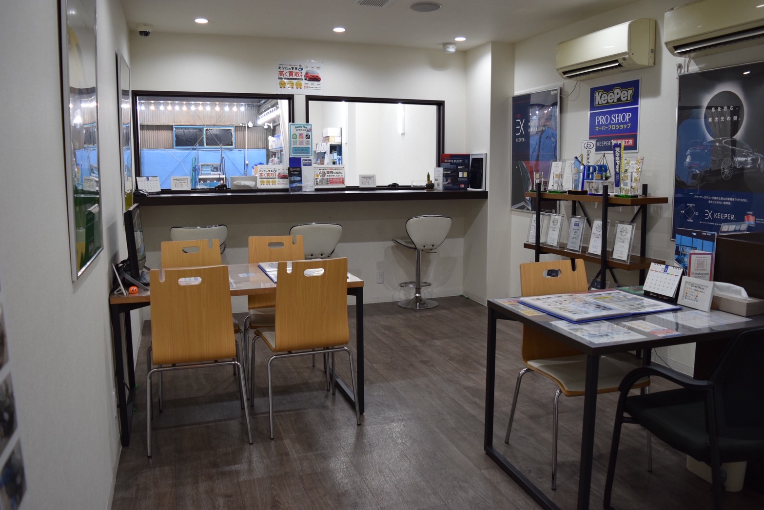コーティング1級技術資格者が丁寧に施工しておりますので、ガラス張りになっている待合室で無料のドリンクをお飲みになりながら施工風景をご覧になれます。