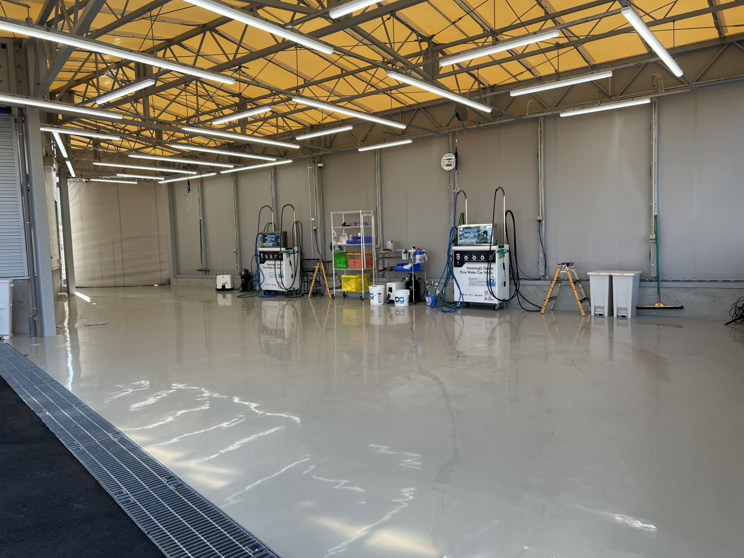 4〜5台同時施工が可能な、全天候型のブースになります。